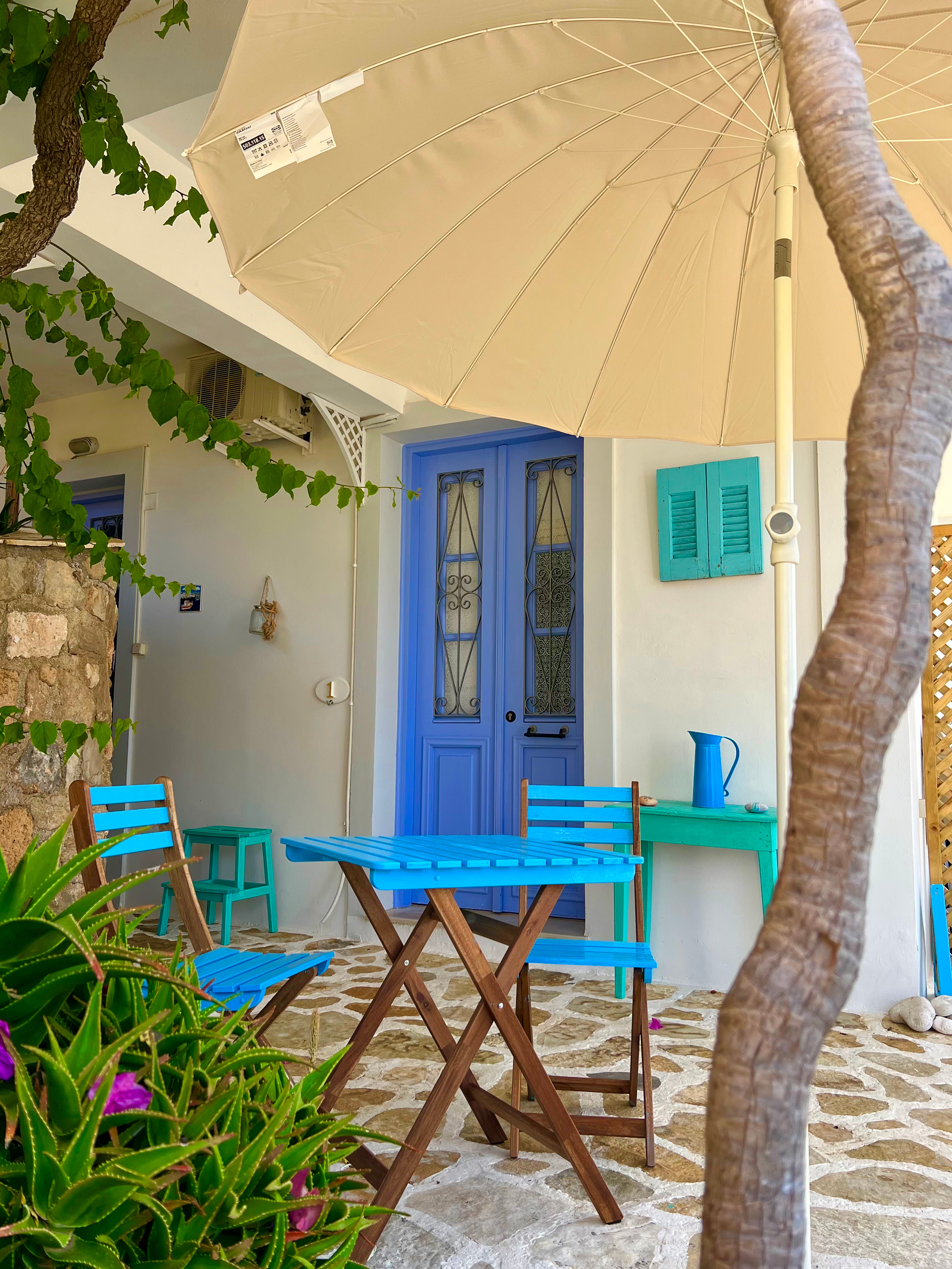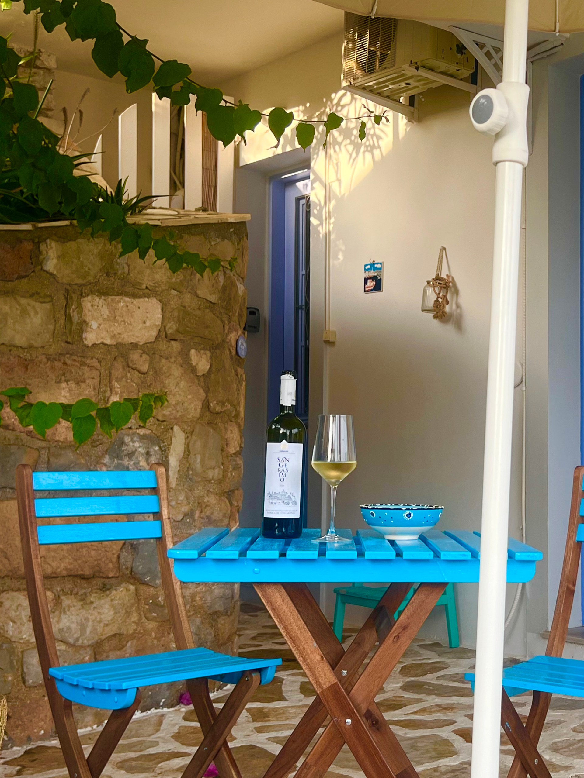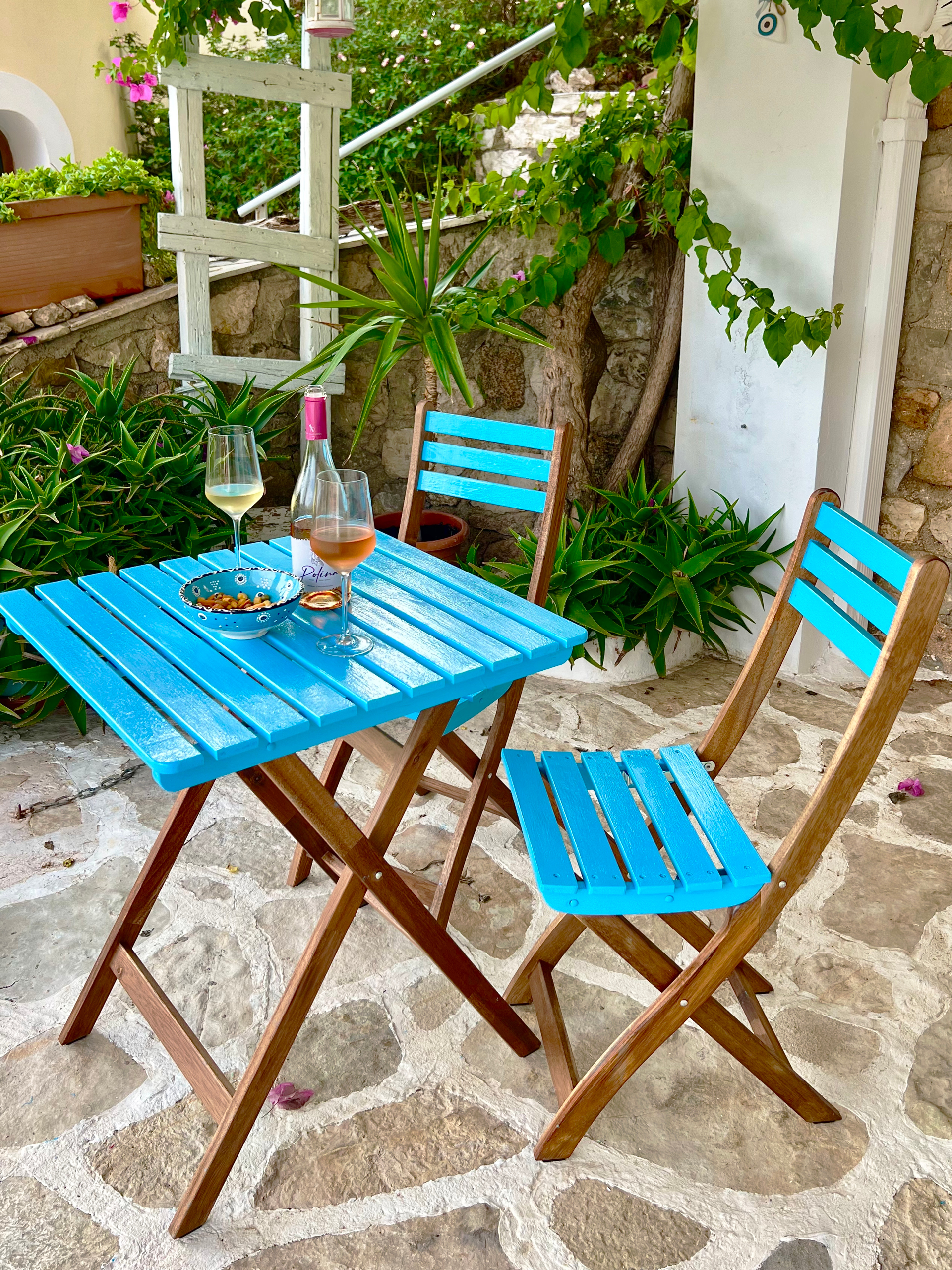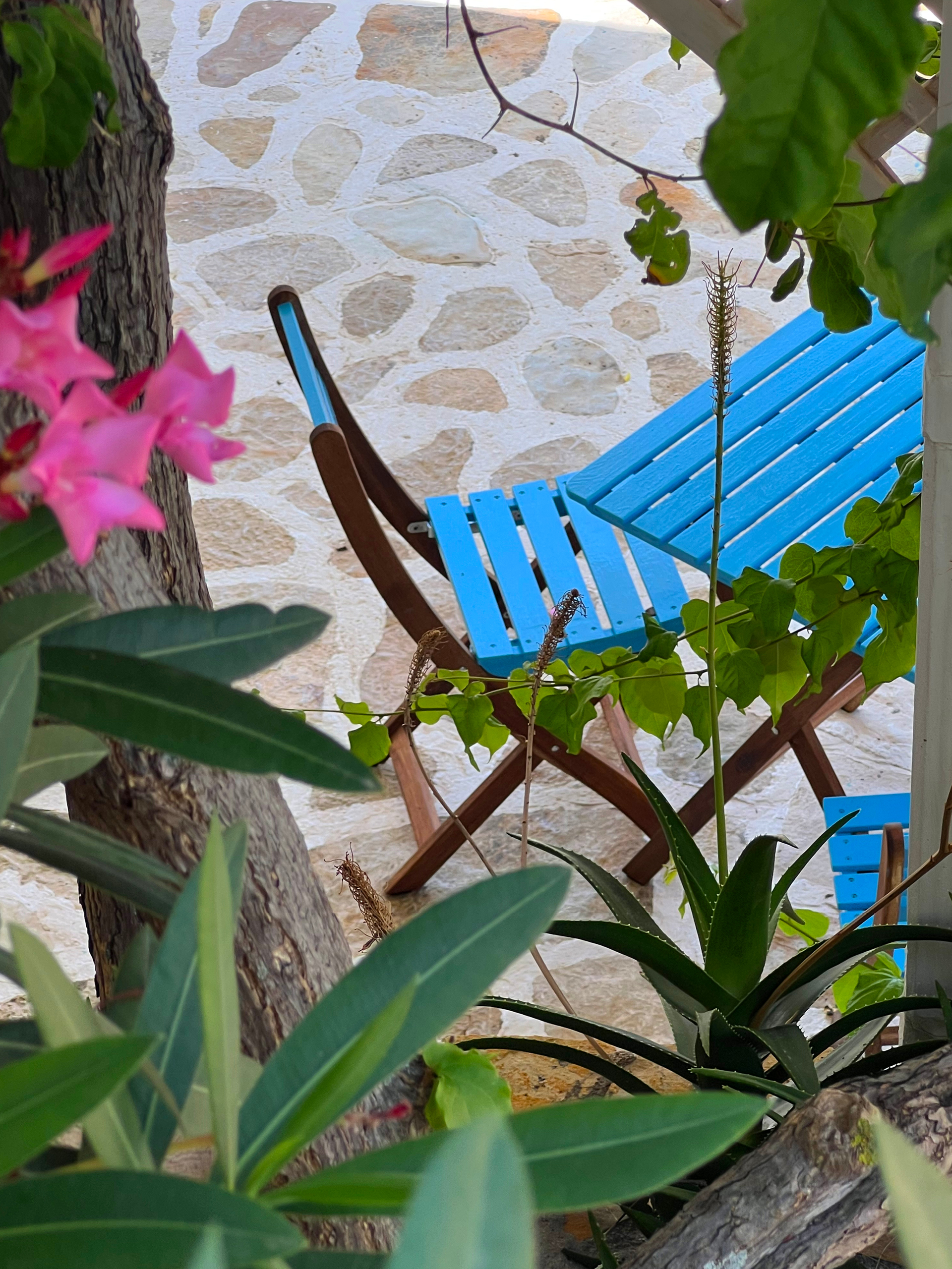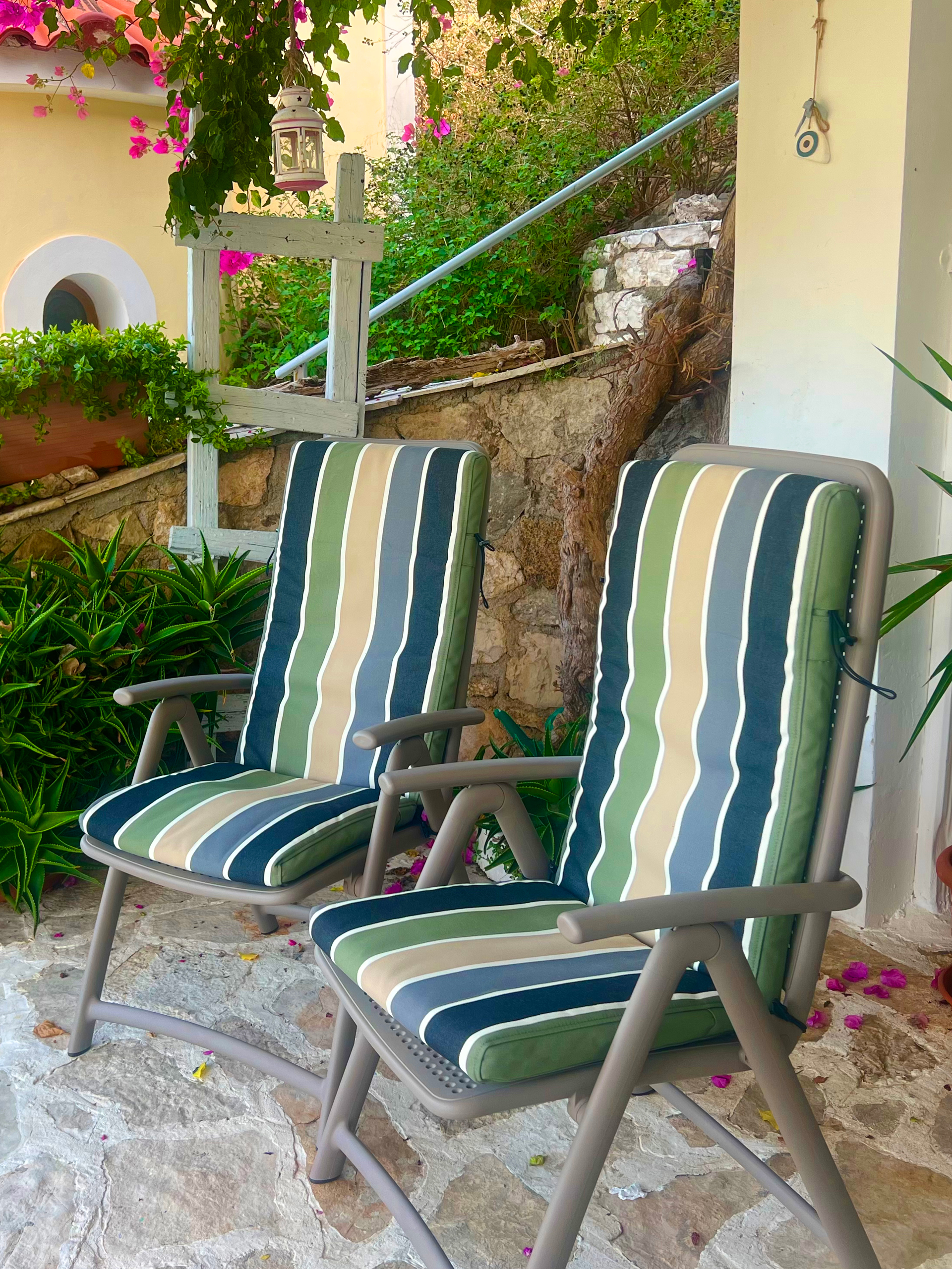 • Private terraces with reclining chairs and a little blue table and chairs - perfect for a quiet glass of wine